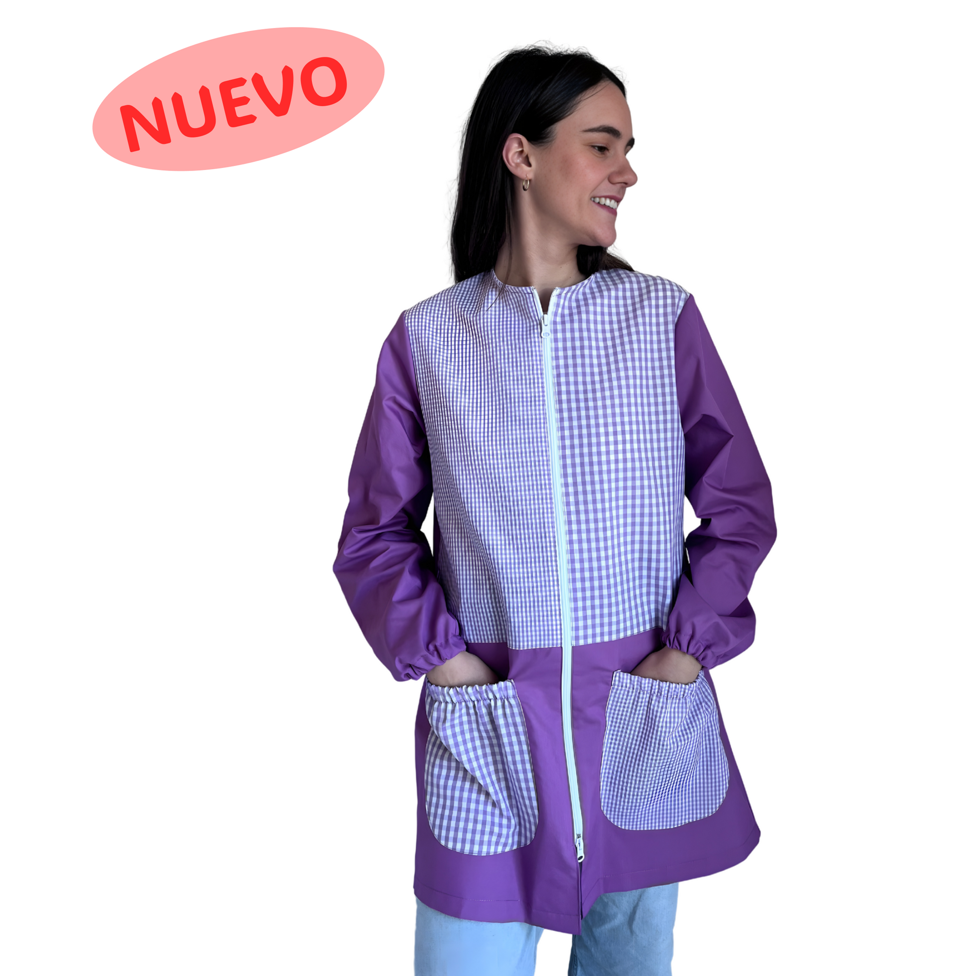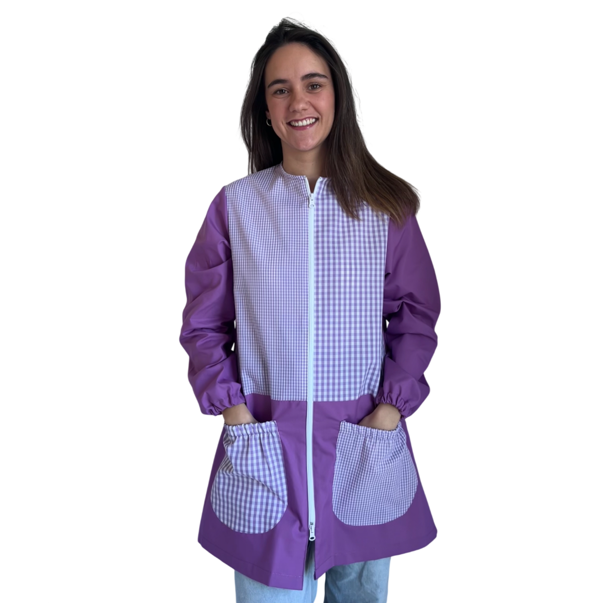 Bata de manga larga recta con dos bolsillos y cremallera de doble carro.